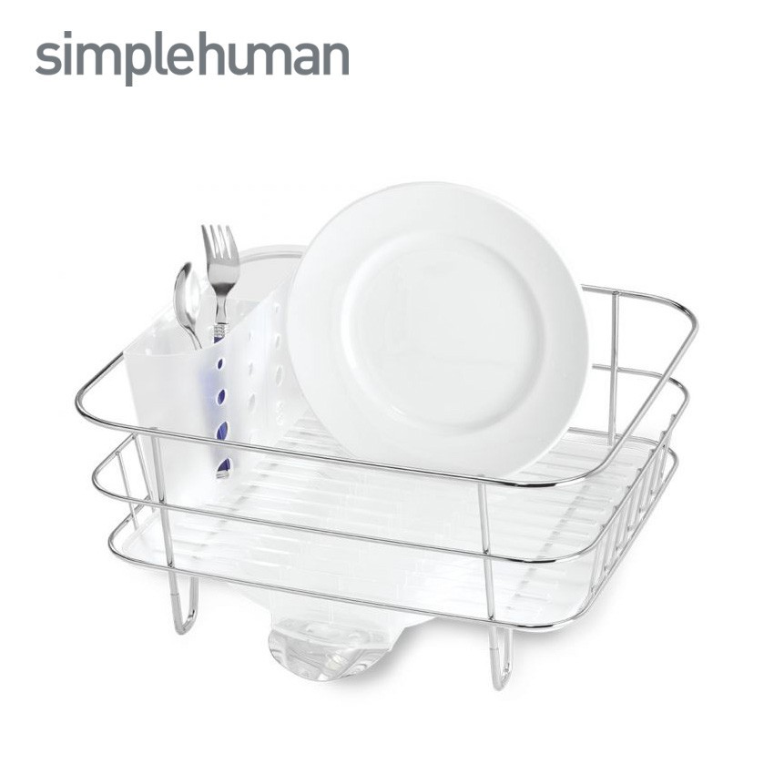 - Simplehuman Compact Stainless Steel Frame Fingerprint Proof Brushed Dish Rack Kitchen Sink Accessories Simplehuman Stainless Steel Frame - Coated Steel Wire Protects Dishes Against Scratches.